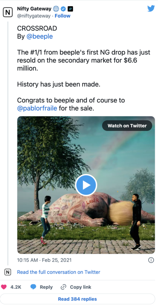 Mais uma criação de Beeple e o NFT mais caro já vendido a um único proprietário – e há um motivo muito especial para isso.