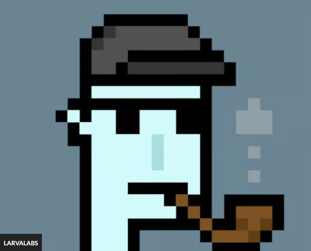 Mais um CryptoPunk na lista, e com certeza não é o último. O número #7804 é um dos apenas nove ‘Alien’ CryptoPunks, com um boné estiloso, cachimbo e óculos escuros para completar o visual.